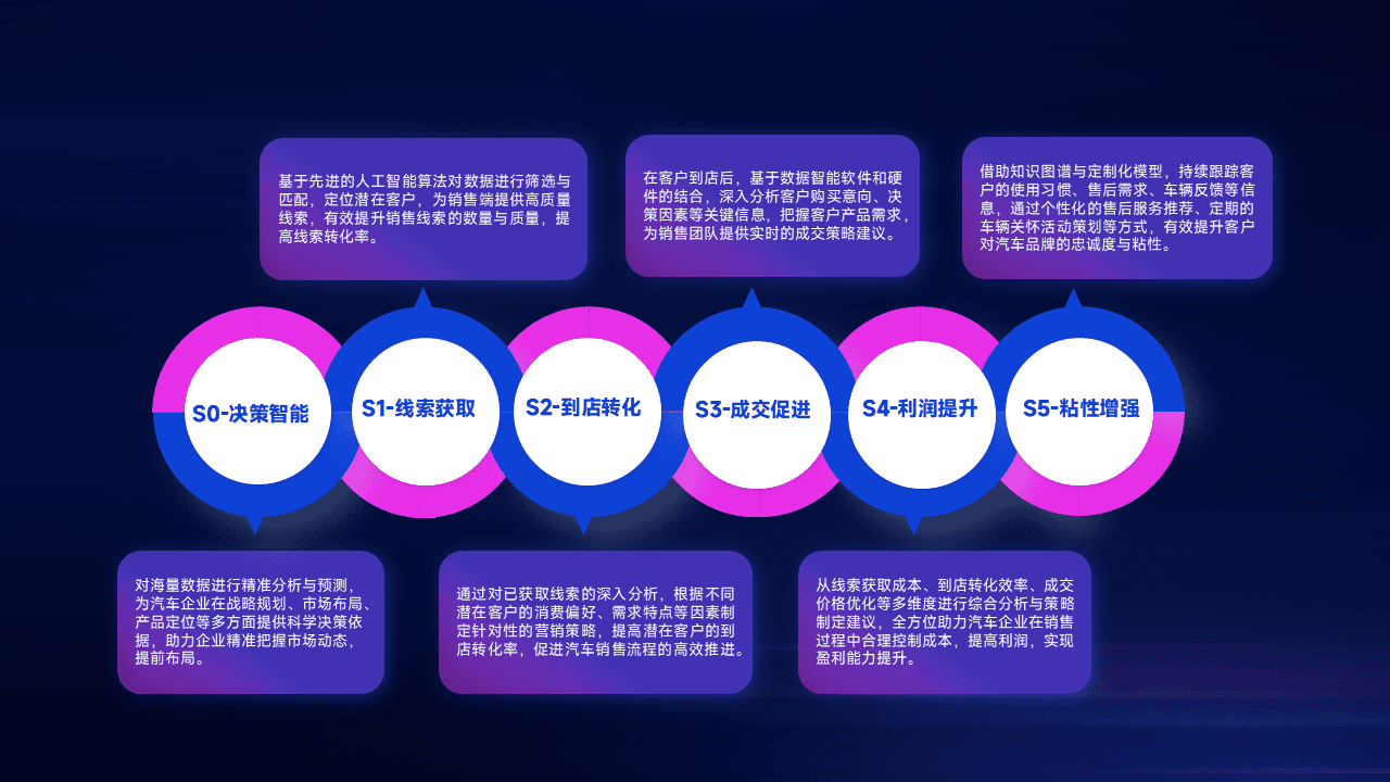 通过拓宽潜在客户来源、、、、优化线索分配并提高到店转化率,,以增强销售效率。。。。同时,,,利用线索数据不断优化分析模型,,,,有效提升转化率,,扩大营销影响力。。